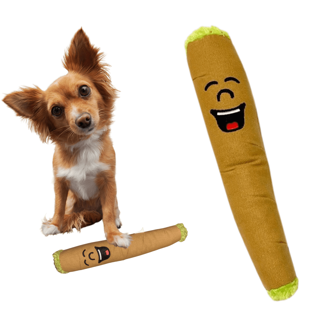 FUNNY: B the Blunt was designed to be a funny dog toy, great for light play or as a photo prop. He is also a funny photo prop for adults! B's back like a giant 10" blunt.
