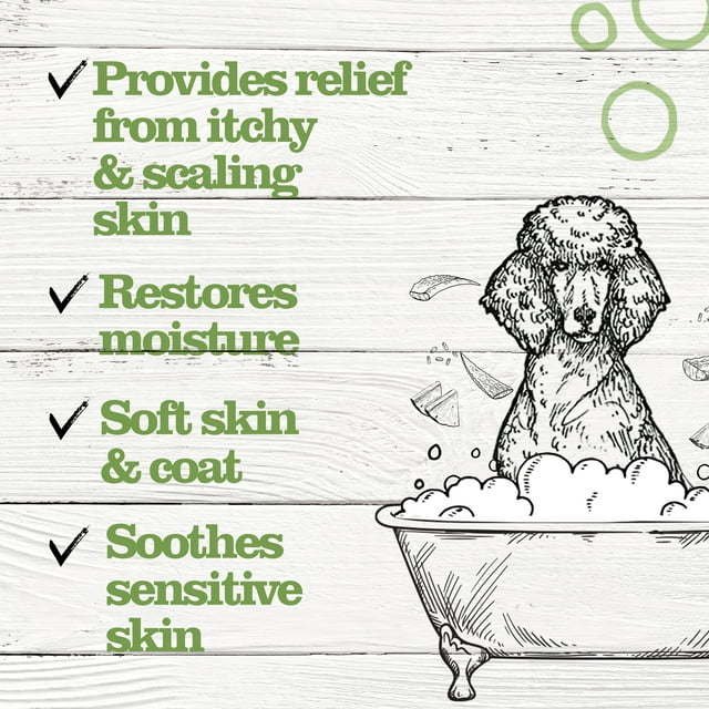 Skin Soother for Dogs & Cats: Oatmeal dog shampoo for allergies and itching uses emollients to help add moisture to skin. Dr. Pol sensitive skin dog shampoo can aid in cat and dog itching skin relief.