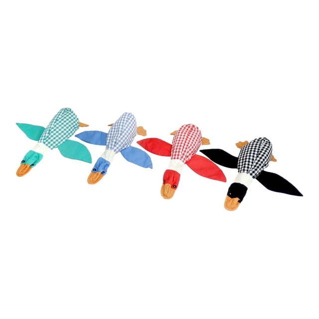 The Squawking Plaid Toy comes in 4 different colors to choose from: black, red, green and blue.