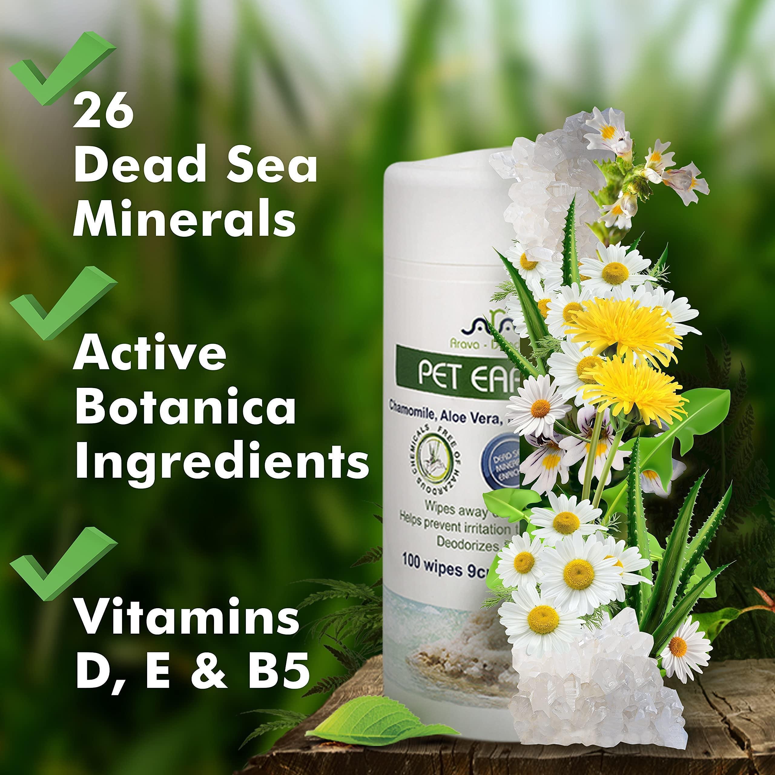 Ear Cleaner Wipes for Dogs Cats Puppies Kittens 100 Count Natural Medicated Cleansing Deodorizer Removes Dirt Wax