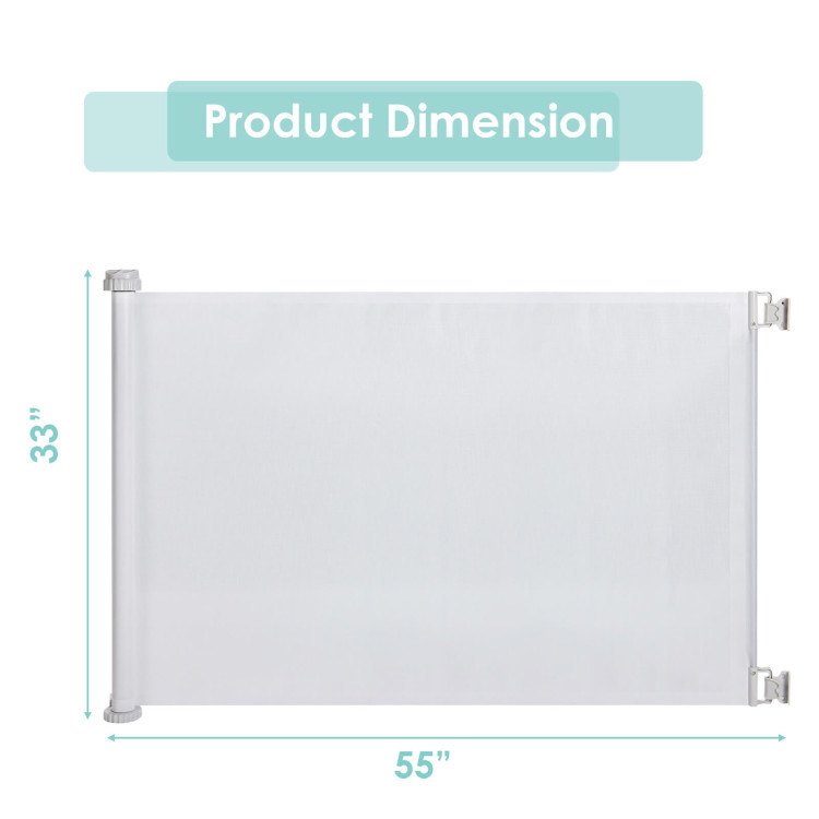 1.Retractable and Space-saving Design: This 31.5" tall white baby gate is capable of extending up to 55" width, thus fitting all most doors. At the same time, it is very smooth to pull out and roll up. When not in use, the baby gate can be fully retracted to save space. Meanwhile, ASTM certification also enhances safety, making you rest assured.