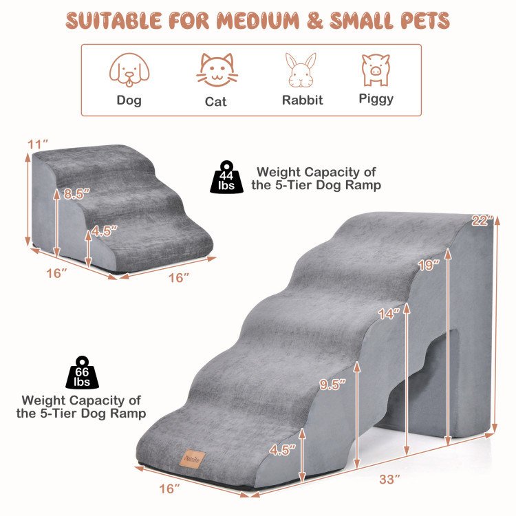 Home > 22 Inches and 11 Inches Foam Pet Stairs Set with 5-Tier and 3-Tier Dog Ramps